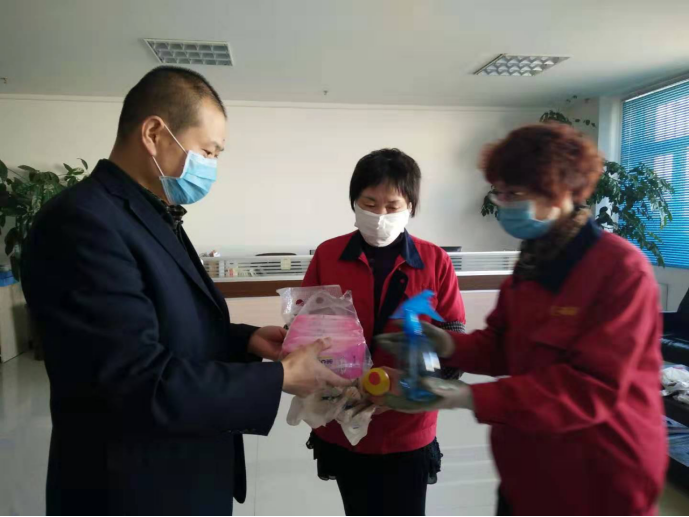 守護(hù)職工筑牢"安全防線":物產(chǎn)配送公司黨委通過配發(fā)酒精40公斤、84消毒液6瓶、消毒濕巾等防控器具,及時組織黨員指導(dǎo)職工進(jìn)行防控工作,重點對宿舍、辦公室、值班室、洗手間門把手、辦公桌椅等進(jìn)行噴灑消毒。