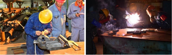 鏡頭三:電解車間"更換陽(yáng)極作業(yè)"比武現(xiàn)場(chǎng),兩車間選派了業(yè)務(wù)能力最強(qiáng)人員組成參賽隊(duì)對(duì)抗比拼。面對(duì)電解槽滾滾熱浪,每一名選手都沉著冷靜、從容應(yīng)對(duì);他們密切配合、張弛有度,按照操作規(guī)程有序進(jìn)行……