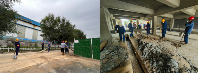 看著整潔的地面和自己身上滿是灰土的工作服,“先鋒隊”成員說道:“臟點累點我們都不怕,衣服臟了干完活再換就行,只要能為公司疫情防控和生產經營出點力就好”。
