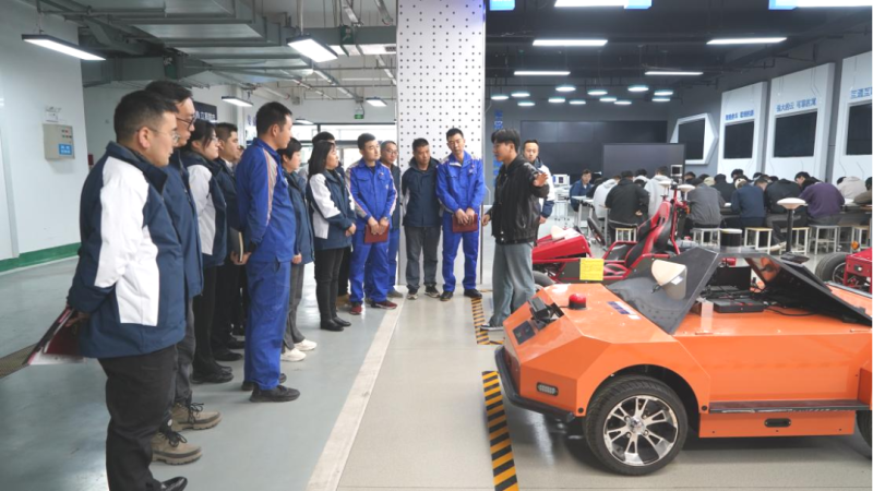 在參觀汽車專業(yè)實(shí)訓(xùn)中心時(shí),交通運(yùn)輸學(xué)院汽車系智慧互聯(lián)專業(yè)老師為支部黨員進(jìn)行了精彩的現(xiàn)場(chǎng)授課。大家積極請(qǐng)教,互動(dòng)交流,了解了智慧互聯(lián)交流與共享的新型模式,對(duì)生活和工作帶來便利和智能化體驗(yàn)等內(nèi)容。在場(chǎng)認(rèn)真聆聽的“物產(chǎn)工匠”石學(xué)林對(duì)近期將與高校老師組隊(duì)參加“西部陸海新通道建設(shè)全國(guó)引領(lǐng)性勞動(dòng)和技能競(jìng)賽”,有了新的啟發(fā)。下一步,校企雙方將會(huì)對(duì)“優(yōu)服務(wù)、壯產(chǎn)業(yè)”技能競(jìng)賽項(xiàng)目進(jìn)行深入的研究和探討,做到交流“不斷線”,學(xué)習(xí)“不停步”。