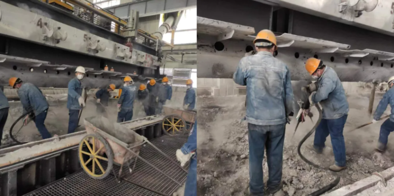 在每個大修槽大修的下午六點,天車隆隆的轟鳴聲、風(fēng)鎬敲擊的脆響,交織成一首“戰(zhàn)斗序曲”。電解槽旁,十幾名職工正弓著腰,手持風(fēng)鎬,一點點剝離槽內(nèi)凝固的電解質(zhì)。他們的工服早已被汗水浸透,又被高溫烤干,結(jié)出一層白花花的鹽霜。這是電解槽大修的第七個晝夜。走近清槽現(xiàn)場,一頂頂鮮艷的黃色安全帽,一聲聲震耳的電鎬聲,一把把明晃晃的鐵鍬,大家爭先恐后、分工明確、里應(yīng)外合,一波接著一波,清槽工作開展的緊鑼密鼓、嚴(yán)絲合縫,一切繁雜工作顯得繁忙而又有序。清槽期間,由于任務(wù)量重,勞動強度大,為加速清理進(jìn)度,大家干累了就在現(xiàn)場輪換原地休息,工作服濕了又干,干了又濕??粗謇沓鰜淼囊欢讯褟U渣和潔凈如新的電解槽,大家臉上露出欣慰的笑容。那笑容里,有完成任務(wù)的自豪,有戰(zhàn)勝困難的喜悅,更有對未來工作的堅定信心。