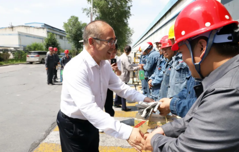 慰問現(xiàn)場,吳有禎與生產(chǎn)一線職工親切交流,詳細詢問大家的工作環(huán)境、勞動保護措施及防暑降溫落實情況,對職工們在高溫天氣下堅守崗位、辛勤付出的精神表示衷心感謝。他指出,炎炎夏日里,廣大干部職工搶抓生產(chǎn)黃金期,不懼酷暑,揮灑汗水,用實干實績?yōu)楝F(xiàn)代化新青海建設作出了貢獻。隨后,吳有禎一行將防暑降溫用品送到職工手中,同時叮囑公司負責人,要高度重視高溫天氣下的安全生產(chǎn)和職工勞動保護工作,合理調(diào)整作業(yè)時間,改善勞動條件,確保職工身體健康和生產(chǎn)安全。