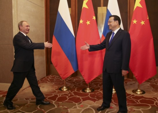李克強總理會見俄羅斯總統(tǒng)普京時說:"中俄兩國是戰(zhàn)略伙伴,互為最大鄰國。共同維護二戰(zhàn)勝利成果,反對歪曲篡改二戰(zhàn)歷史,這是我們的共識,也是對世界正義的伸張。"