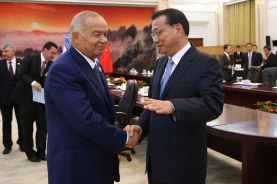 李克強總理會見烏茲別克斯坦總統(tǒng)卡里莫夫時說:"中烏可以在雙方感興趣的領域廣泛開展產能和裝備制造業(yè)合作。"