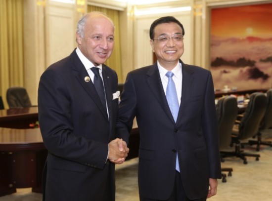 李克強總理會見法國外長法比尤斯時說:"希望把中法第三方合作和核能合作做成'南北合作'的示范項目,做成推動世界經(jīng)濟向復蘇方向前行的引導性項目。"