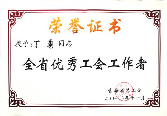 在2012年11月23日召開(kāi)的青海省工會(huì)第13次代表大會(huì)上,省總工會(huì)對(duì)全省優(yōu)秀個(gè)人、模范集體進(jìn)行了表彰。集團(tuán)總經(jīng)理王玉輝同志榮獲"全省職工之友"榮譽(yù)稱號(hào);青海物產(chǎn)物資配送有限責(zé)任公司工會(huì)榮獲"全省模范職工之家"榮譽(yù)稱號(hào);馬軍同志榮獲"全省優(yōu)秀工會(huì)積極分子"榮譽(yù)稱號(hào);丁勇同志榮獲"全省優(yōu)秀工會(huì)工作者"榮譽(yù)稱號(hào)。