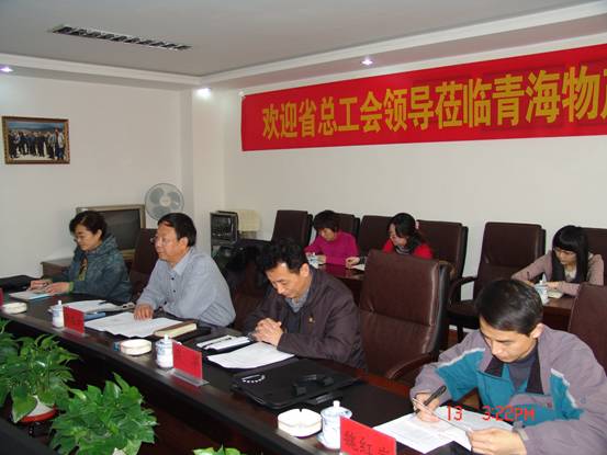 2012年12月13日下午,省總工會(huì)第六考核組組長、省總副巡視員兼法律保障部部長李忠云、考核組成員、省總機(jī)關(guān)黨委專職副書記呂華、考核組成員、省總組織部副調(diào)研員姬紅捷、考核組成員、省總經(jīng)濟(jì)部魏紅巖一行蒞臨青海物產(chǎn)集團(tuán),對物產(chǎn)工會(huì)2012年度工作開展情況進(jìn)行考核。