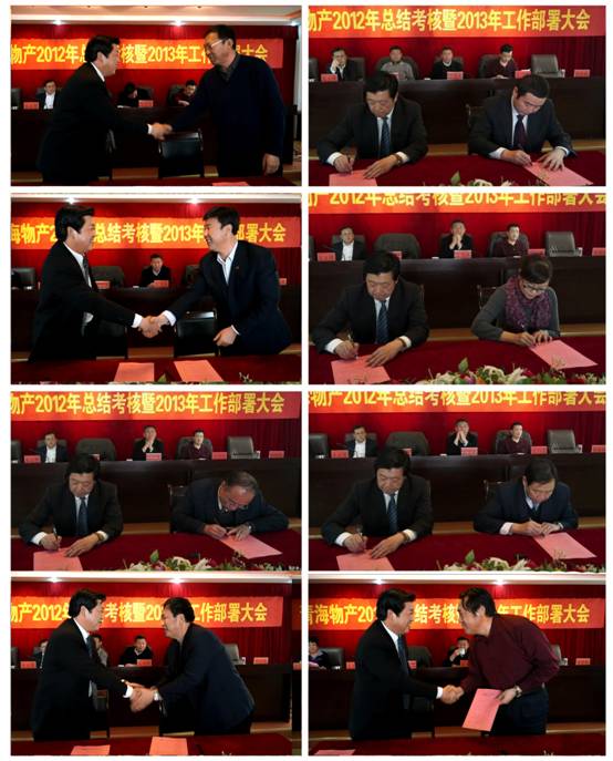 會(huì)上,由集團(tuán)總經(jīng)理王玉輝與所屬各公司、集團(tuán)各部簽訂2013年經(jīng)營(yíng)業(yè)績(jī)目標(biāo)責(zé)任書,由集團(tuán)黨委書記白家林與所屬黨委(總支)、直屬黨支部簽訂黨建工作目標(biāo)管理責(zé)任書、與所屬各公司法定代表人簽訂黨風(fēng)廉政建設(shè)責(zé)任書。