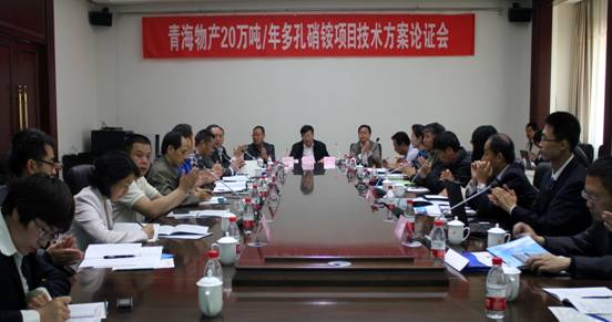 青海物產(chǎn)工業(yè)投資有限公司20萬噸/年多孔硝銨項(xiàng)目技術(shù)方案論證會(huì)于2013年5月17日-19日在青海西寧召開,省物產(chǎn)集團(tuán)總公司總經(jīng)理王玉輝、副總經(jīng)理耿保平、北川工業(yè)園管委會(huì)副主任薛萬革、建行西寧支行副行長(zhǎng)王硯宏蒞臨會(huì)議指導(dǎo),會(huì)議由物產(chǎn)工投常務(wù)副總經(jīng)理常海寧和專家委員會(huì)主任分別主持。煙臺(tái)萬華高級(jí)工程師王全文、山西天脊高級(jí)工程師劉金亮、湖北鐘祥凱龍高級(jí)工程師楊國(guó)富、華陸工程科技有限公司教授級(jí)高工劉艷軍、陜西興化工程師馮衛(wèi)、物產(chǎn)民爆總經(jīng)理袁海玲、物產(chǎn)工投高級(jí)工程師薛玉貴、華陸工程科技有限公司副總經(jīng)理齊吟、賽鼎工程有限公司商務(wù)部副主任劉軍彪及相關(guān)主設(shè)人員、項(xiàng)目建設(shè)單位代表等共36人參加了會(huì)議。專家委員會(huì)推選楊國(guó)富擔(dān)任主任委員、袁海玲擔(dān)任副主任委員。